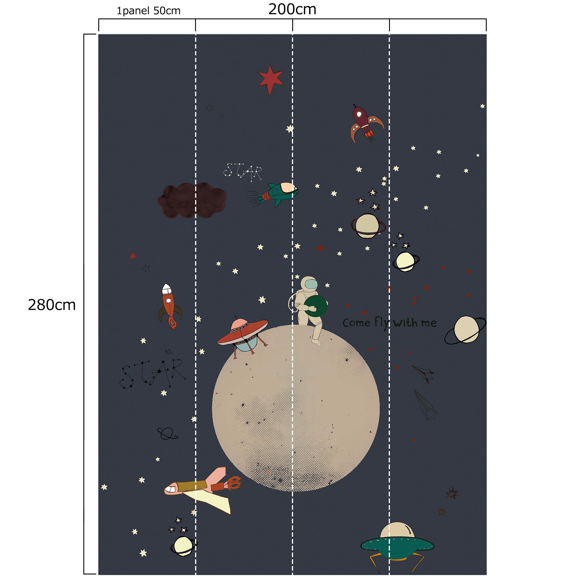- El mural consta de 4 paneles de 50 cm de ancho.