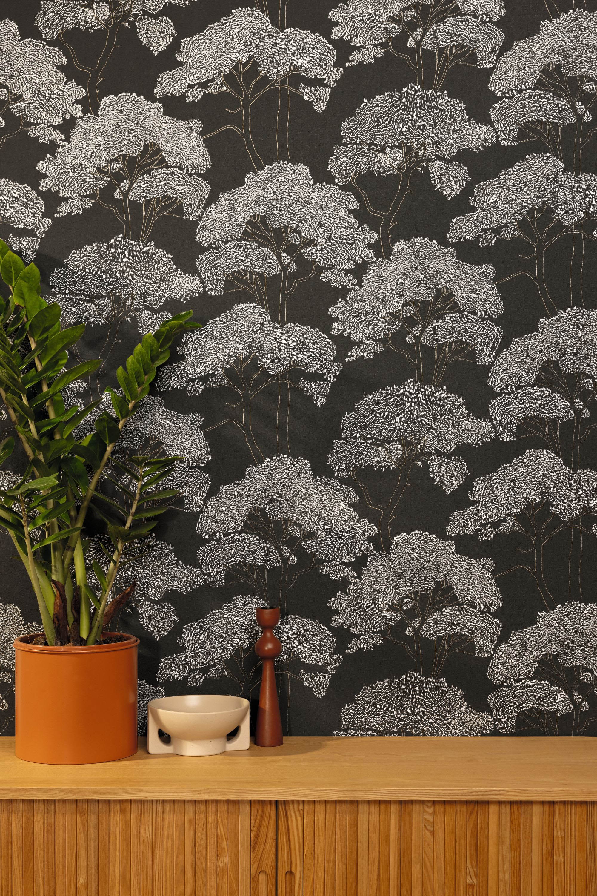 Papel Pintado con estampado de Árboles gráficos en color principal Antracita