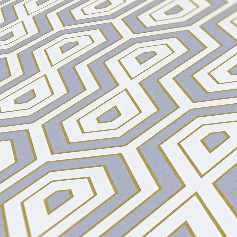 Encuentra el reloj de arena en este papel pintado de diseño geométrico. El patrón se compone con diferentes colores en tonos gris, blanco roto y ocre. A la vez vintage y moderno, este papel pintado aportará carácter a cualquier decoración.
