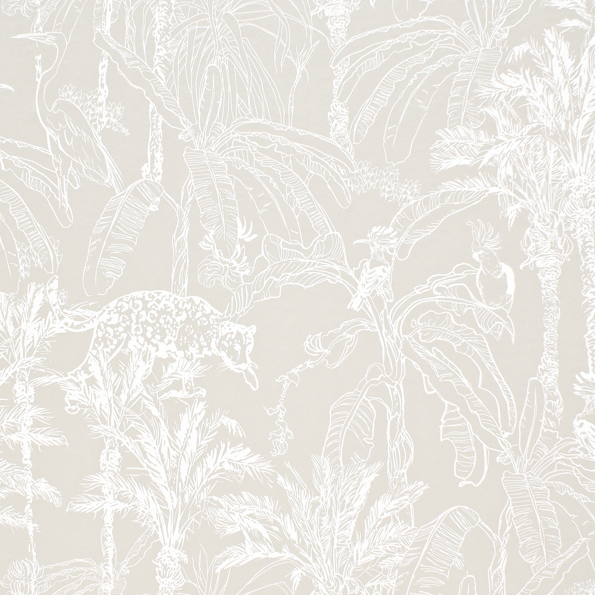 - Diseño de papel pintado que te sumerge en la selva profunda y hará que sientas cómo te envuelve su fauna salvaje y su exhuberante vegetación. Los patrones de estilo lineal en color blanco destacan sobre un fondo piedra mate y te transportarán a un mundo salvaje.