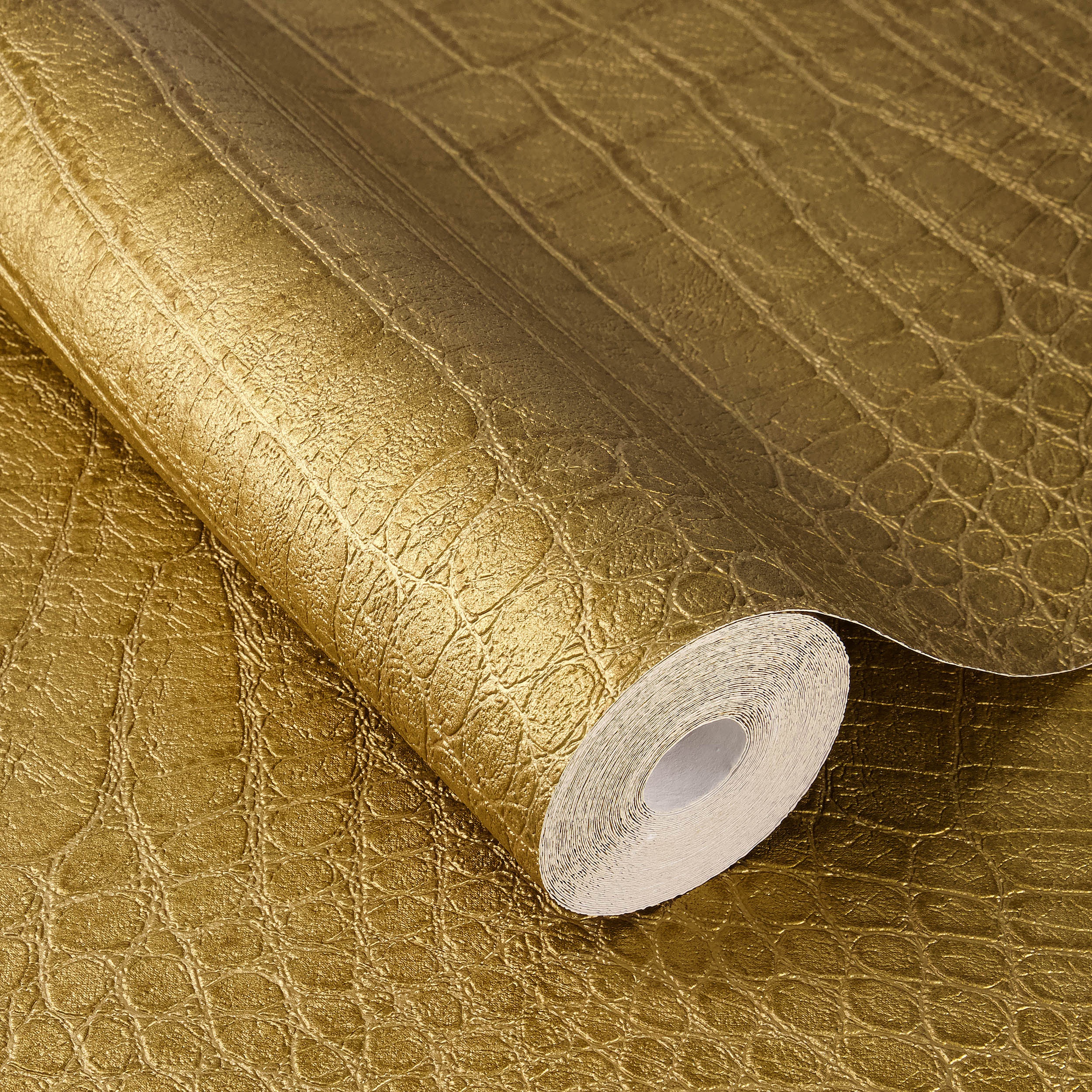 Papel Pintado con estampado de Piel de cocodrilo en color principal Oro.