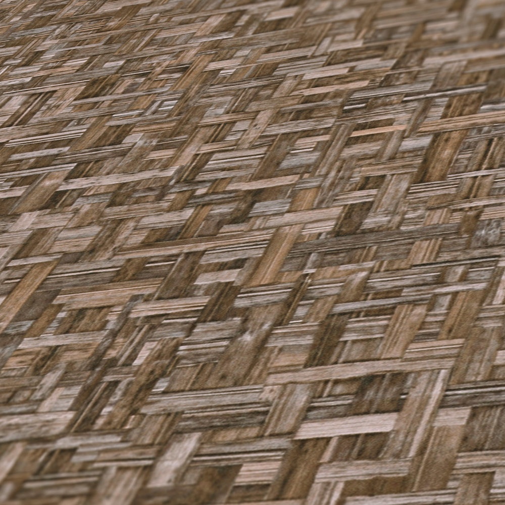 Papel Pintado con estampado Mimbre trenzado en color principal marrón