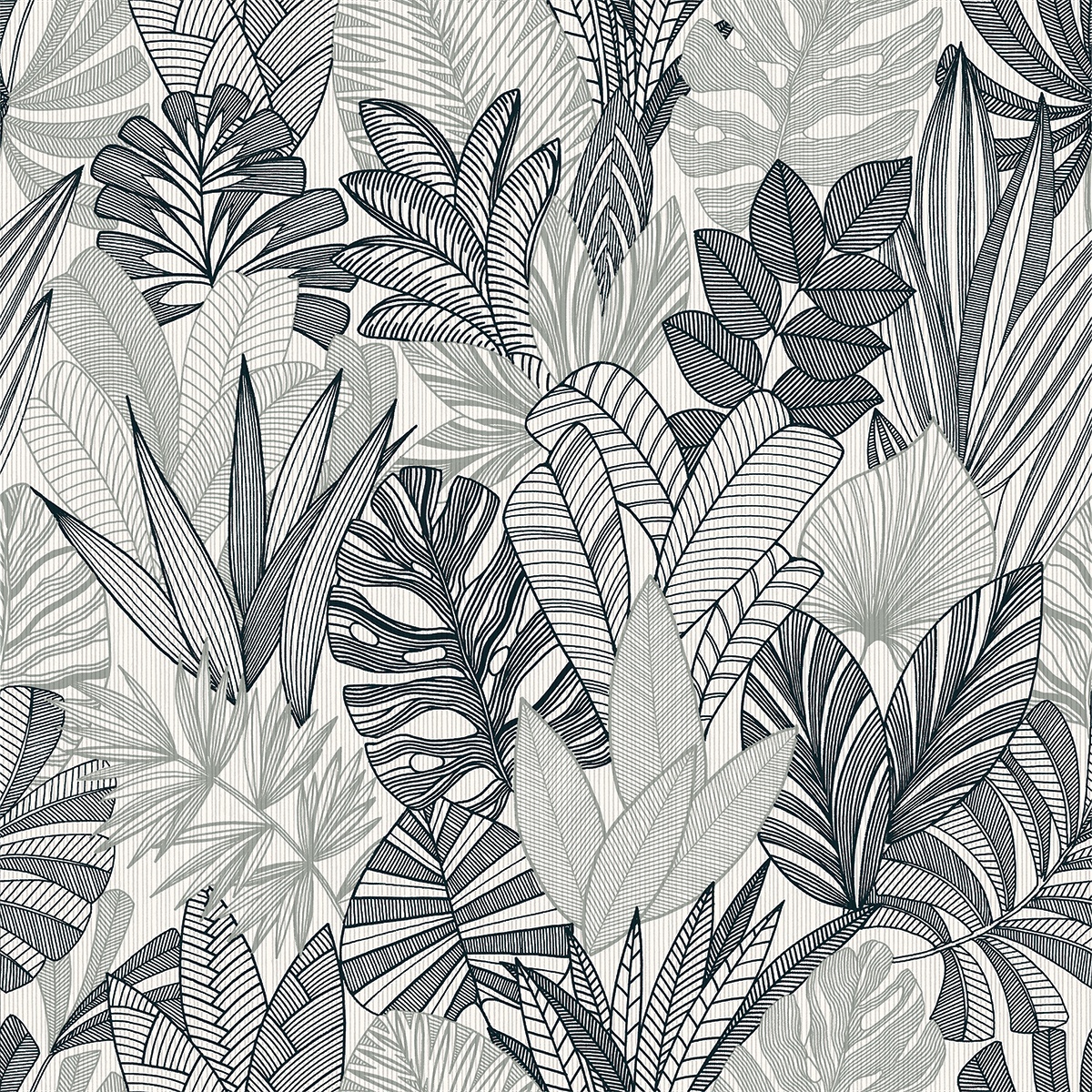 • Papel Pintado con estampado de Hojas tropicales en color principal gris