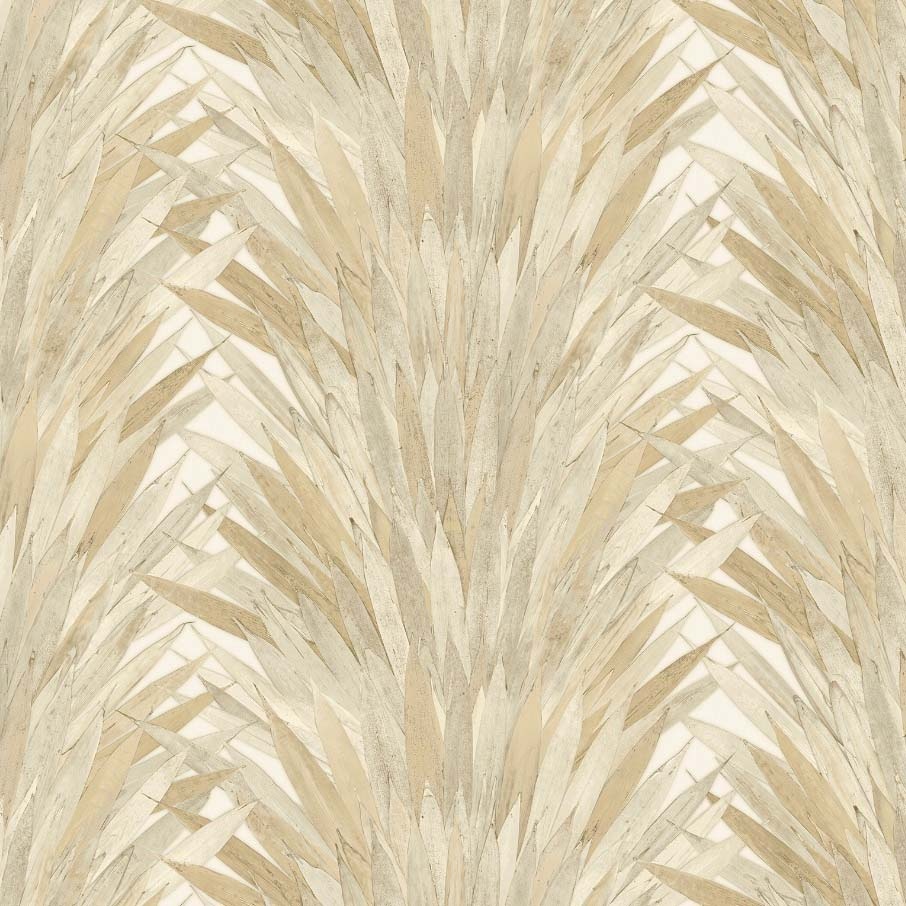 - Este diseño de papel pintado muestra las hojas de la palmera de Pandanus dispuestas en forma de abanico con un pronuncionado relieve y un suave brillo. El patrón, en forma de collage, presenta tonos beige y arena en un espectacular contraste que transmite profundidad. El revestimiento nos ilustra la belleza de la naturaleza tropical. <