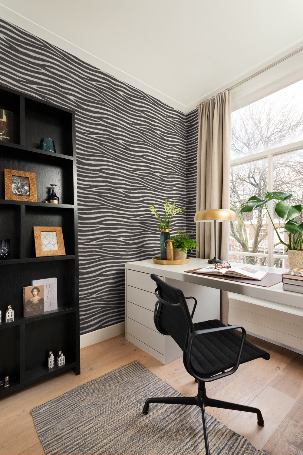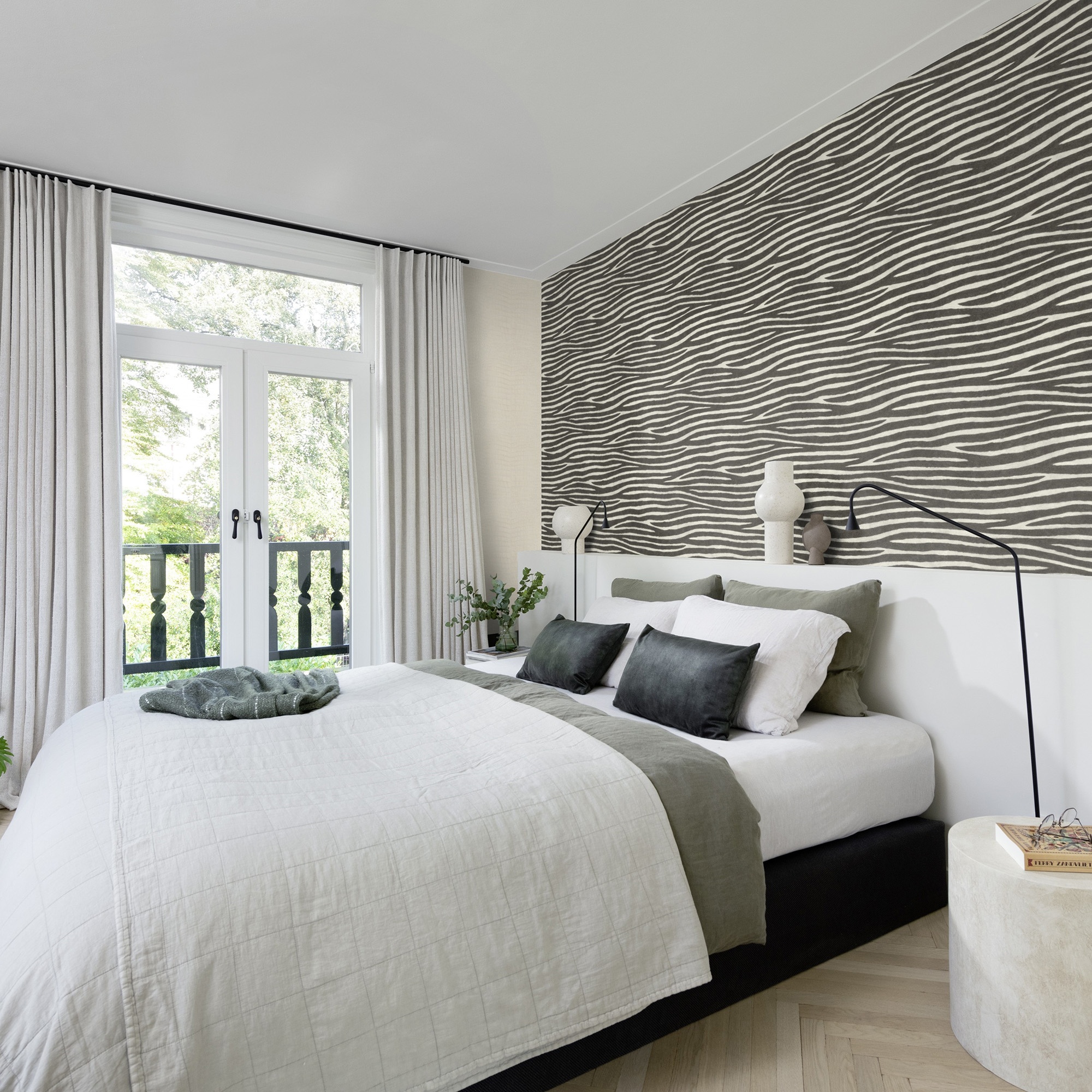 Este diseño se inspira en la esencia salvaje y artesanal de África. El patrón de rayas de cebra en tonos negro y blanco aporta un estilo exótico y natural a las paredes .